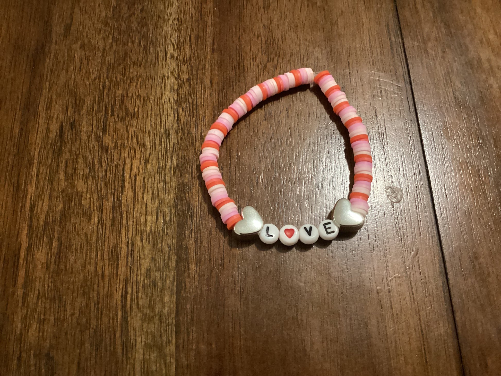 Chic and heartfelt, this pink, red, and white bracelet whispers "amour" in every detail.