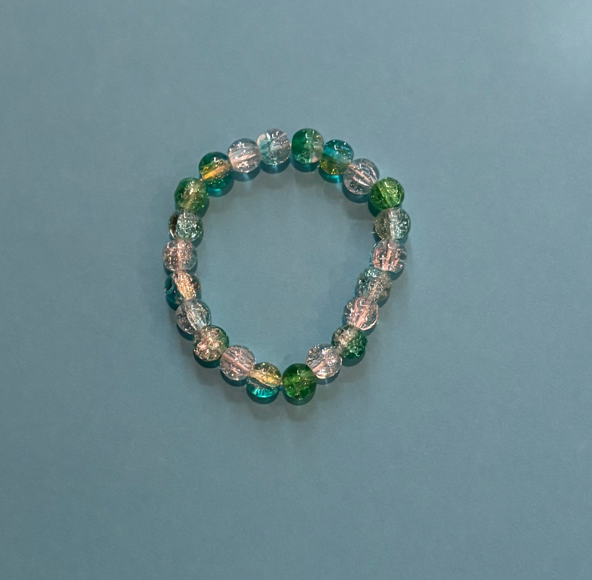 Inspired by nature’s calm, this bracelet blends soft greens, blues, and clear shimmer for a fresh, peaceful look — like sunlight through water and leaves.