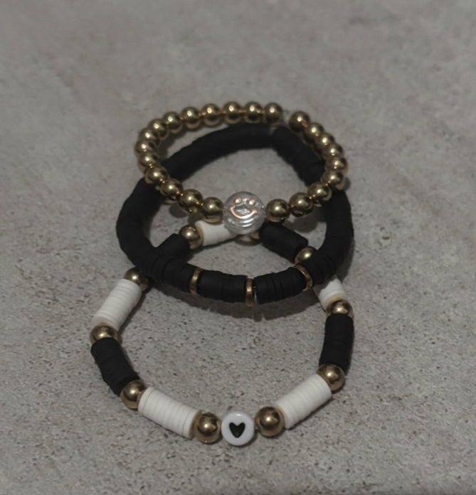 Turn every outfit into a statement with our black, white, and gold bracelet bundle. Sleek, elegant, and effortlessly stylish- stack them, mis them, and let your wrist shine.