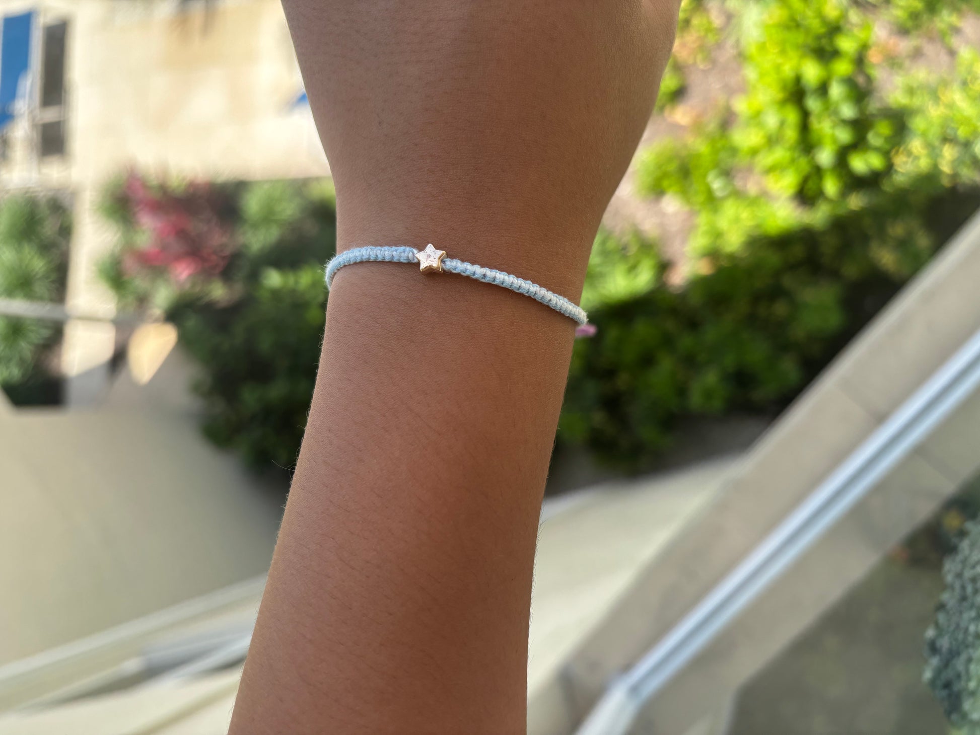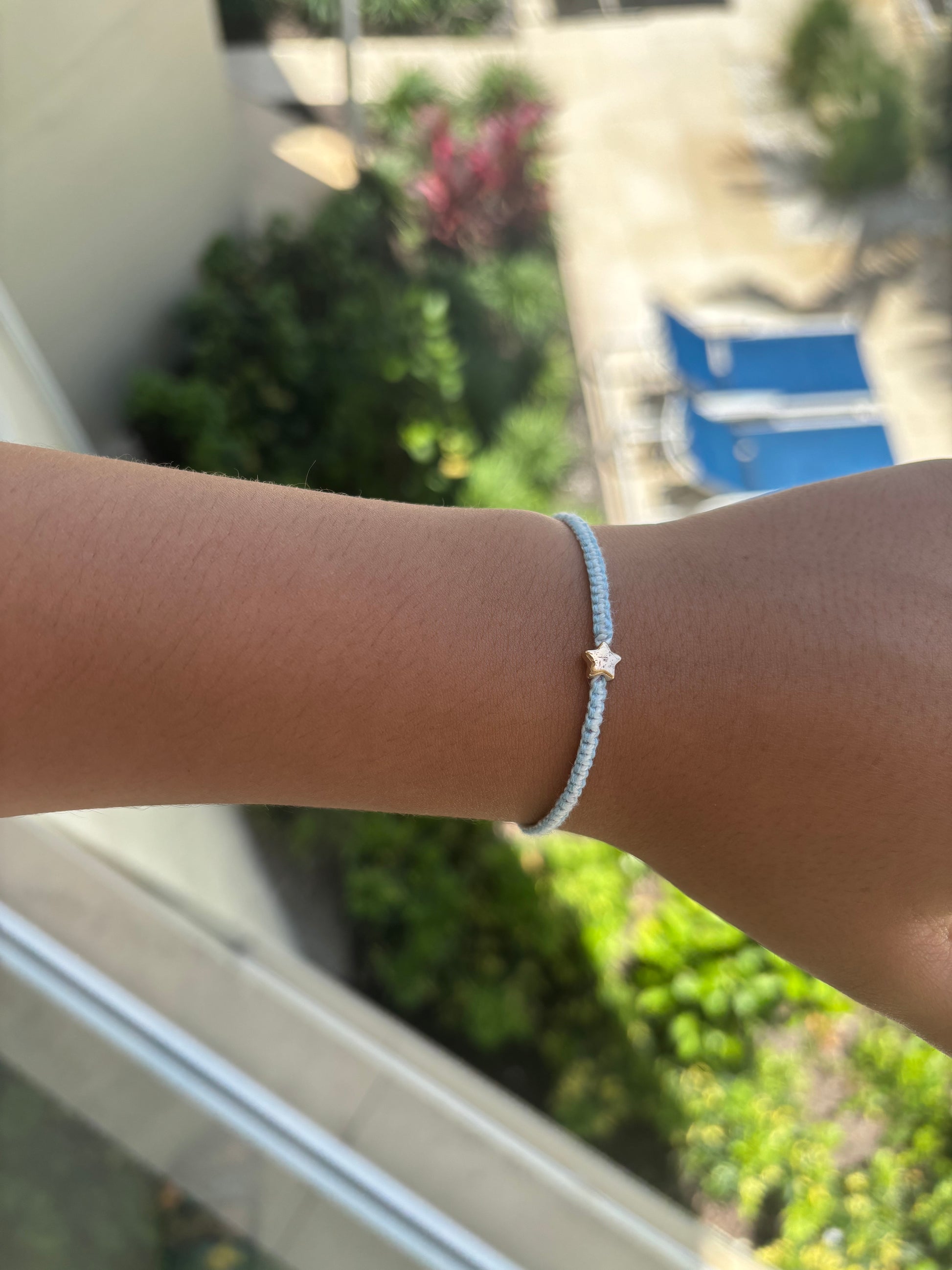 Light and airy- this baby blue and white thread bracelet brings calm, cool vibes to every outfit.