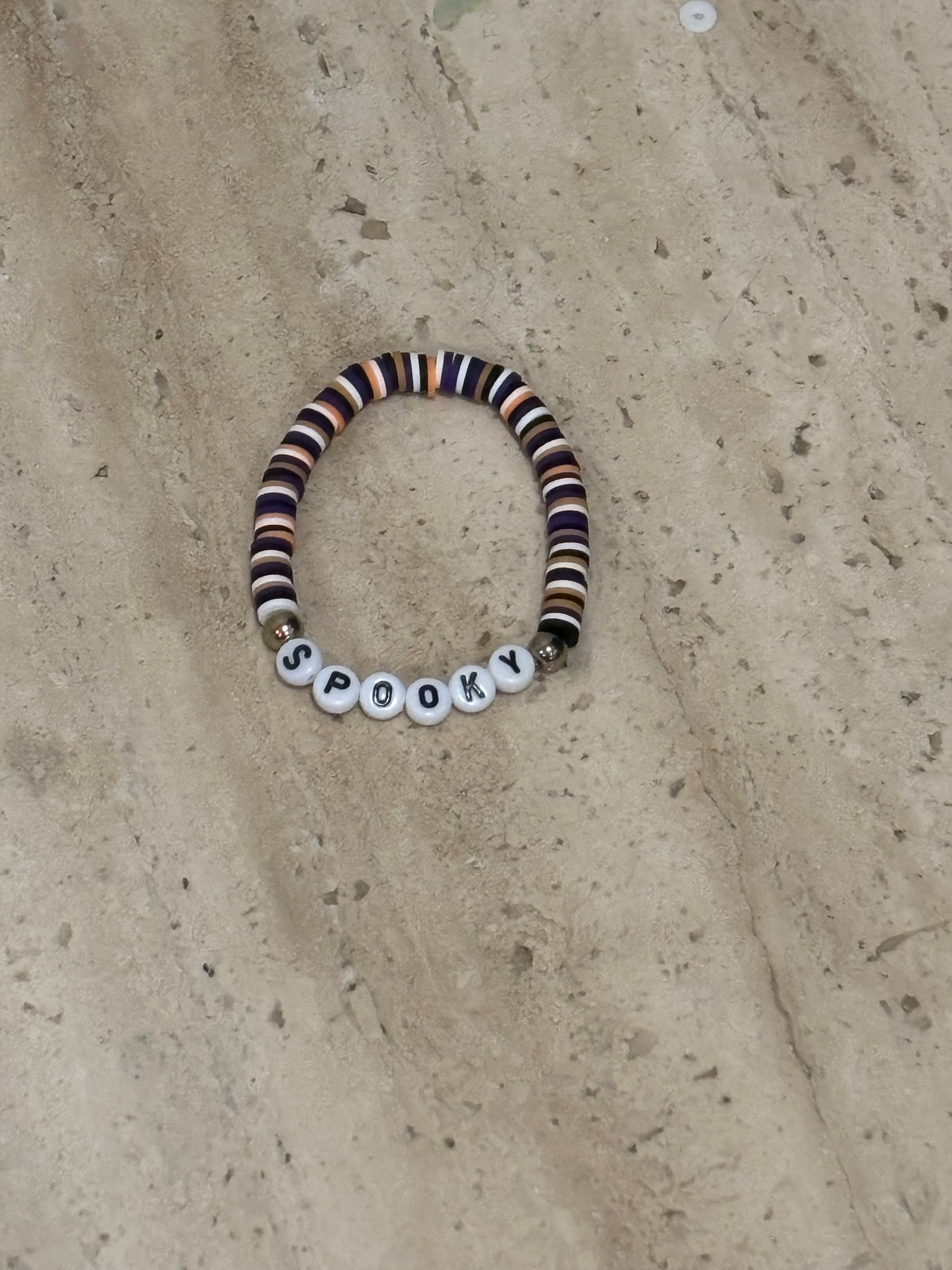 Bold, playful, and full of Halloween spirit — Spooky Chic brings the festive vibes with striking black, orange, purple, and white beads and a cheeky “SPOOKY” that makes every outfit a treat. Perfect for adding a little mischief to your fall style!